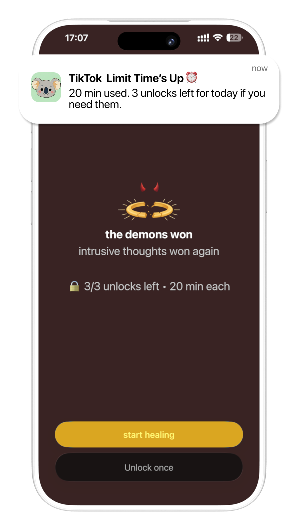 "My therapist recommended I reduce screen time. Koala made it feel like a game, not a punishment. My anxiety has noticeably decreased."